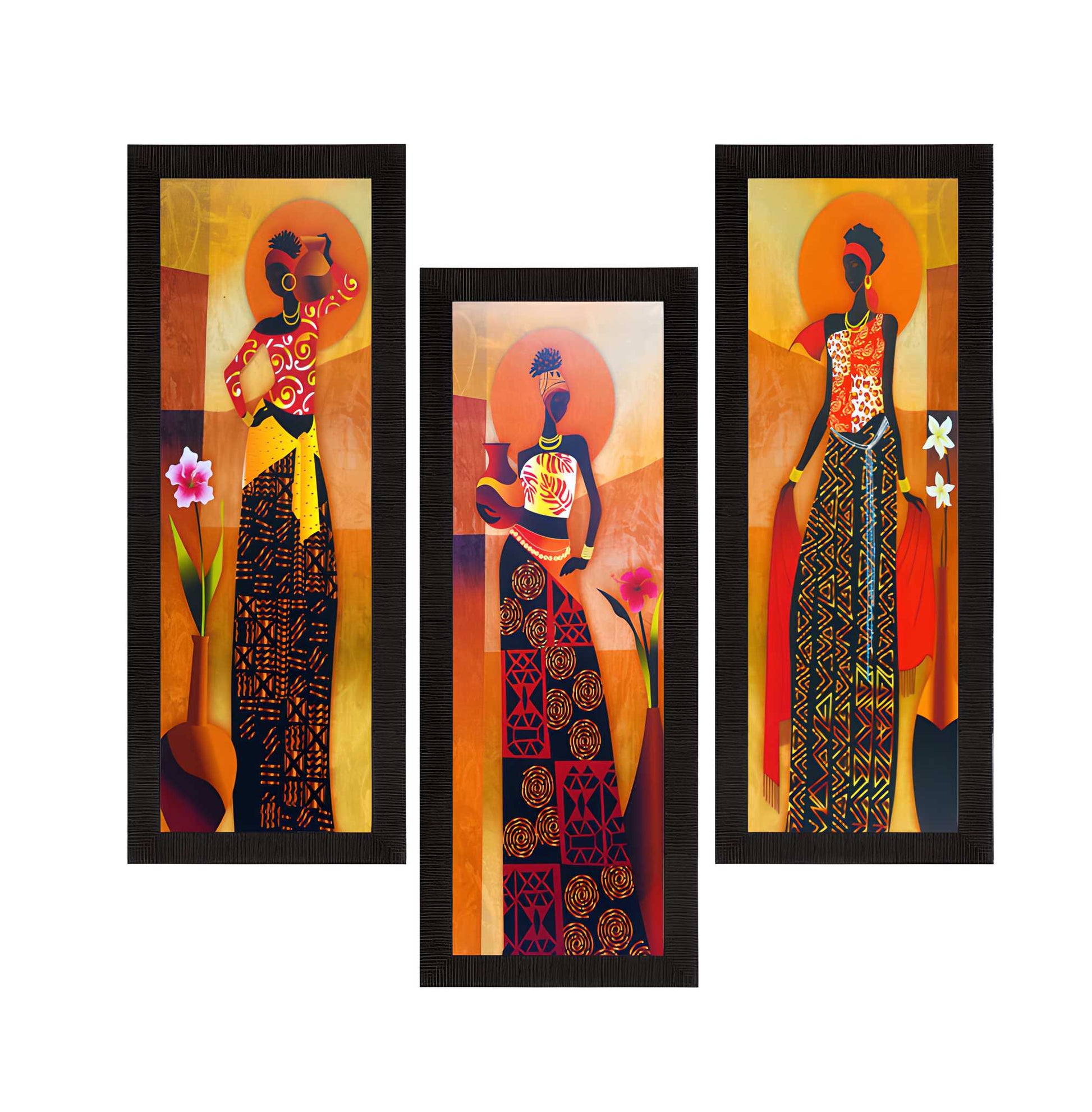 Set Of 3 Tribal Village Ladies Satin Matt Texture UV Art Painting